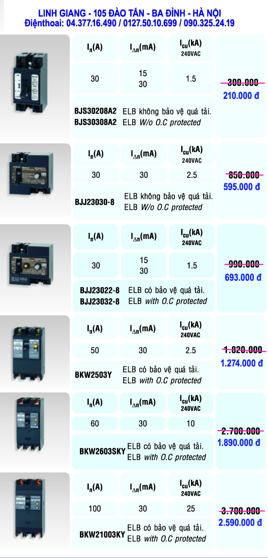 II. ÁT KHỐI BẢO VỆ QUÁ TẢI VÀ CHỐNG GIẬT ELB: