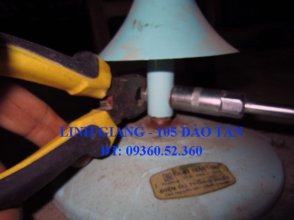 4- Dùng tuýp D10 gắn chặt cánh vào bầu quạt