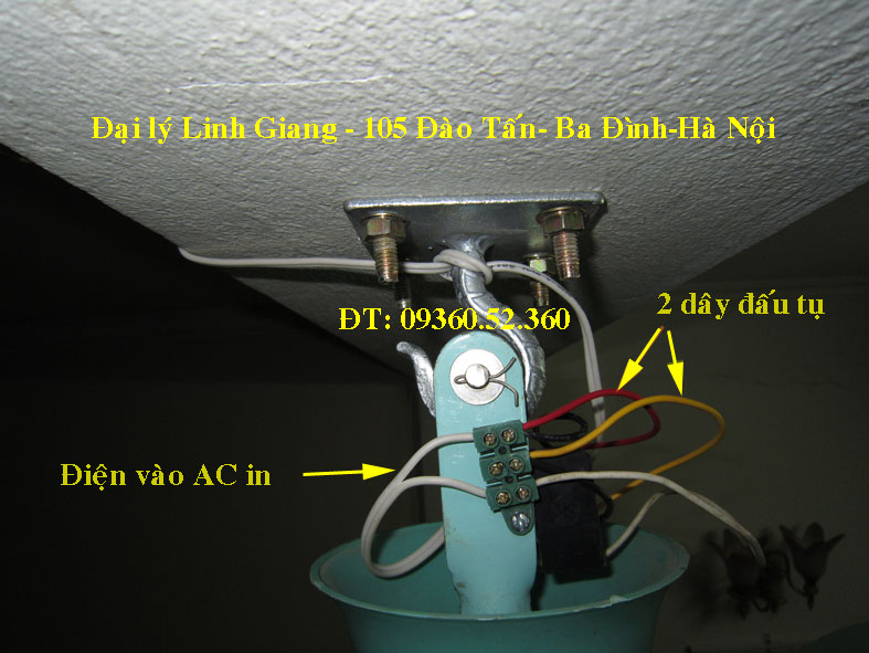 2- Luồn 3 sợi dây điện từ bầu quạt qua trục: