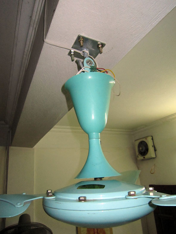 Cuối cùng bản mã được gắn chặt vào trần bê tông qua 4 nở sắt D10mm, đảm bảo chắc chắn tuyệt đối. Nếu như theo thiết kế khi treo các quạt trần trang trí của Trung Quốc (Loại quạt không dùng móc) chỉ dùng 2 nở sắt D8mm, thì việc dùng 4 nở sắt D10mm đã tăng độ an toàn và vững chắc lên gấp nhiều lần. Qua thực tế thi công, sau khi hoàn thành chúng tôi đã đánh đu, lắc rung nhiều lần nhưng không thấy suy chuyển gì.