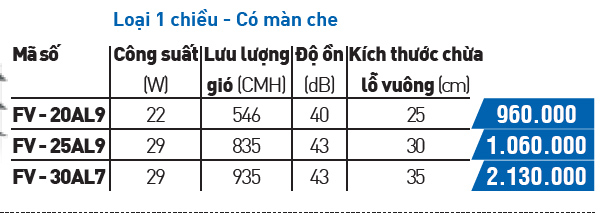 - Quạt hút gắn tường 1 chiều hút ra ngoài, có màn che