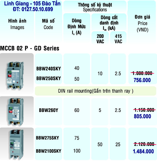 át khối MCCP Panasonic 2 cực: BBW240SKY / BBW260Y / BBW275SKY