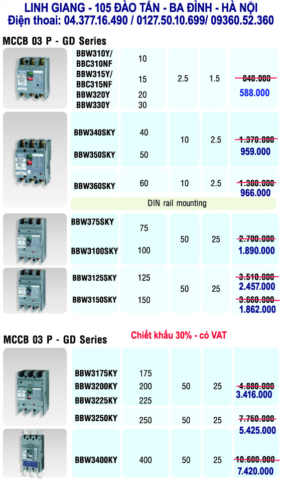át khối MCCP Panasonic 3 cực:BBW310 / BBW340 .. 150 SKY