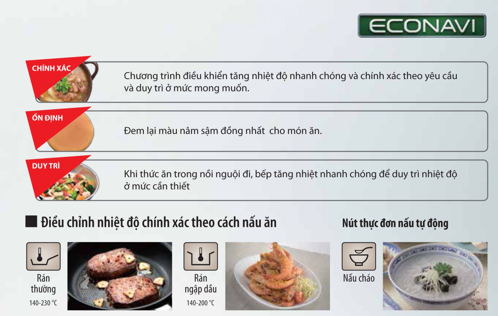 - Chế độ Econavi giúp kiểm soát nhiệt độ chính xác khi đun nấu