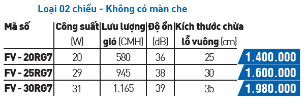 Quạt hút 2 chiều không màn che Panasonic FV-20RG7 / FV-25RG7 / FV-30RG7