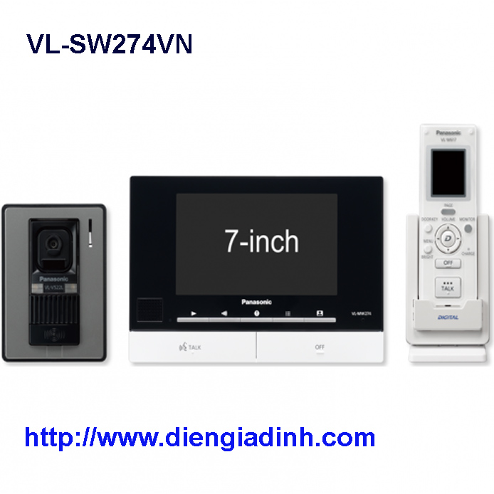 - Trọn bộ chuông cửa Panasonic VL-SW274VN bao gồm: Màn hình VL-MW274VN, 01 camera chuông cửa VL-V522LVN và 01 màn hình không dây cầm tay VL-W617VN.