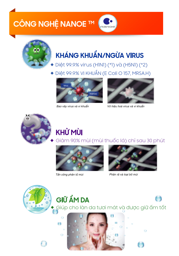 Kháng khuẩn/Ngừa virus (Diệt 99,99% virus cúm H1N1 & H5N1)